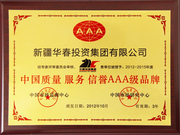 中國質(zhì)量服務(wù)信譽(yù)AAA級品牌