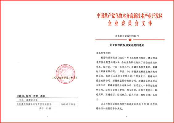為迎接中華人民共和國(guó)誕生60周年和開展好第27個(gè)民族團(tuán)結(jié)教育月宣傳活動(dòng),高新區(qū)于4月25~26日舉辦了由轄區(qū)內(nèi)各文明委成員單位和各企業(yè)積極參與的“感恩偉大祖國(guó) 建設(shè)和諧首府”板報(bào)展,華春投資集團(tuán)以著重反映華春企業(yè)全貌和著重反映華春?jiǎn)T工風(fēng)采的2塊宣傳板報(bào),以其板報(bào)編輯的思想性和構(gòu)思設(shè)計(jì)的新穎性,得到了高新區(qū)評(píng)委會(huì)的首肯,在參展的眾多板報(bào)中被評(píng)為第一名,將于5月中旬參加由烏魯木齊市委宣傳部組織的優(yōu)秀板報(bào)展覽。