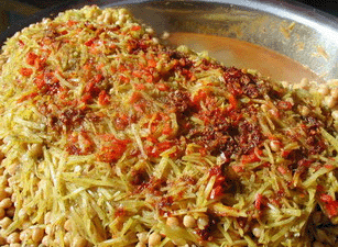 當鍋蓋掀開時,金黃的小豆、胡蘿卜,鮮紅的辣椒絲立刻刺激著你的食欲,豆子特有的清香彌漫在你的四周,在加上維吾爾廚師幽默的吆喝,如果不嘗一嘗就對不起這張嘴了。