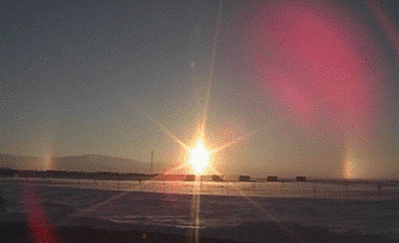 當時,只見貼近地平線的太陽周圍,形成兩道以太陽為中心的彩色光帶。光帶顯現(xiàn)出紅藍綠紫等色彩,格外絢麗奪目。亮燦燦的太陽與彩色光帶相互輝映,頗為奇特。這一現(xiàn)象持續(xù)了近 1 個小時。