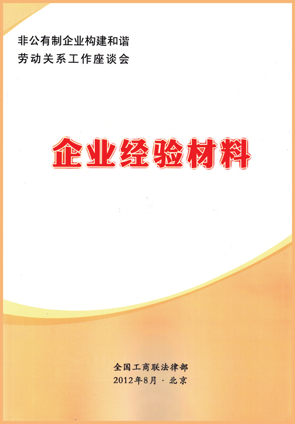 今年8月,華春集團與華春工會的先進事跡收入了由全國工商聯(lián)主辦的非公企業(yè)構建和諧勞動關系工作座談會企業(yè)經(jīng)驗材料匯編之中。