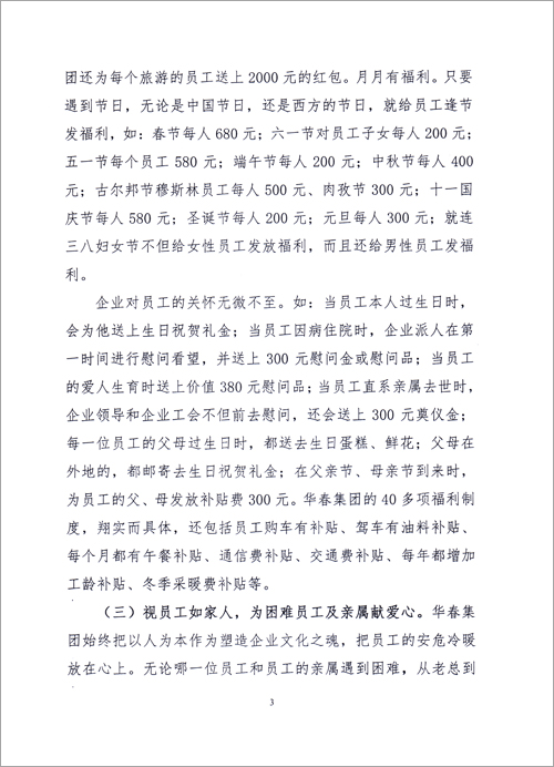 我們完全有理由相信,隨著華春企業(yè)的發(fā)展,華春投資集團(tuán)無論是對內(nèi)對外,將會讓每一個(gè)員工及家人都過上幸福的生活,將會為社會的和諧做出更大貢獻(xiàn)!