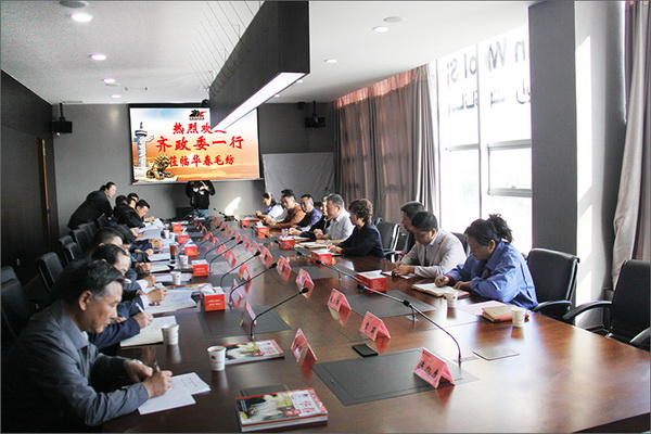 在國慶節(jié)即將到來的前夕,兵團(tuán)第六師五家渠市黨委書記、政委齊新平帶領(lǐng)師市相關(guān)部門領(lǐng)導(dǎo)一行十多人,到華春毛紡調(diào)研,與華春投資集團(tuán)部分高管和華春毛紡管理人員進(jìn)行了座談。華春集團(tuán)李成功總裁就華春毛紡生產(chǎn)經(jīng)營、產(chǎn)品銷售、員工情況以及遇到的問題等,向齊新平政委一行做了匯報。