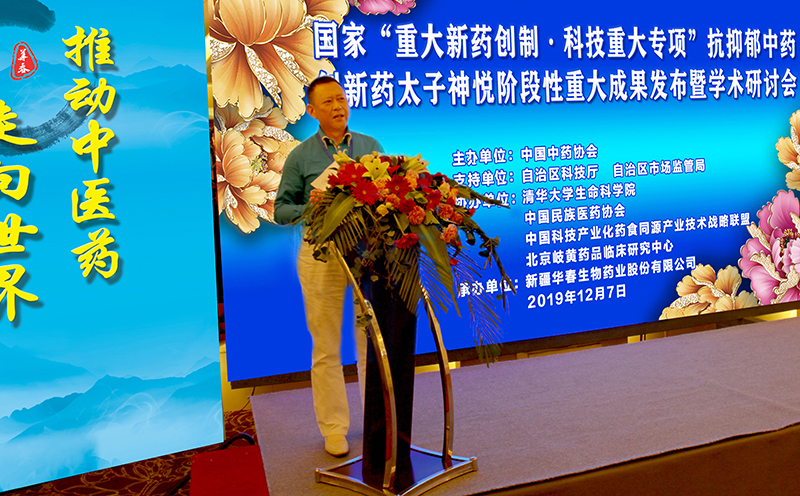 首先,受中國工程院院士、中國中藥協(xié)會黃潞琦會長委托,中國中藥協(xié)會常務副會長劉張林先生致辭,他說,歷經(jīng)17年的艱辛努力,在國家衛(wèi)計委、科技部、國家藥監(jiān)局、新疆維吾爾自治區(qū)人民政府高度重視與大力支持下,由清華大學、新疆華春生物藥業(yè)股份有限公司共同研發(fā)的中國原創(chuàng)性抗抑郁中藥創(chuàng)新藥太子神悅順利完成三期臨床研究總結,結果顯示,太子神悅膠囊的有效率為75.14%,與經(jīng)典化學藥氟西汀相當,而在安全性以及癥候改善方面太子神悅具有明顯優(yōu)勢,充分體現(xiàn)了中醫(yī)藥在精神神經(jīng)疾病領域的特色與生命力。能夠取得如此成果,真是可喜可賀!抑郁癥已經(jīng)成為全球致殘率第一的重大疾患,并已超過心腦血管病成為全球第二大疾病。太子神悅階段性重大成果是落實習近平總書記關于“守正創(chuàng)新”發(fā)展中醫(yī)藥事業(yè)重要指示的代表性進展,填補了中國抗抑郁中藥原創(chuàng)性新藥創(chuàng)制的空白,必將對新疆中醫(yī)藥產(chǎn)業(yè)以及區(qū)域優(yōu)勢中藥材種植業(yè)的快速發(fā)展產(chǎn)生重大影響,同時對于推動中醫(yī)藥現(xiàn)代化也將具有里程碑意義!