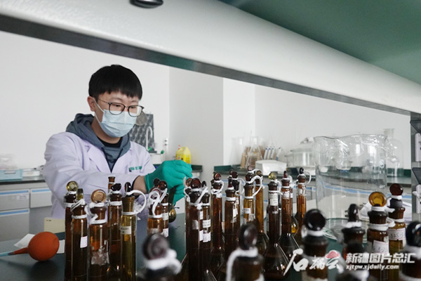 ![]() 在新疆特豐藥業(yè)股份有限公司,研究員正進行藥品實驗。石榴云/新疆日報記者 趙敏攝