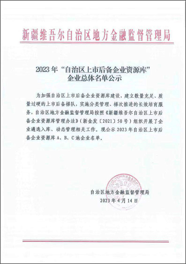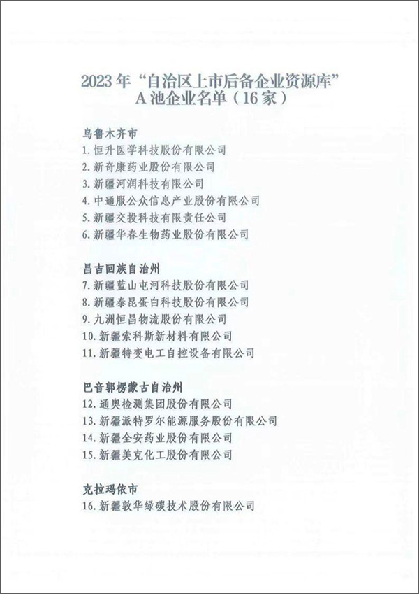 在華春集團(tuán)迎來28周年華誕節(jié)的喜慶時刻,華春生物藥業(yè)又迎來重大喜訊——在自治區(qū)地方金融監(jiān)督管理局于4月14日公布的2023年“自治區(qū)上市后備企業(yè)資源庫”名單中,新疆華春生物藥業(yè)股份有限公司連續(xù)名列資源庫A池企業(yè)名單。真是雙喜臨門,喜悅之情溢于言表!