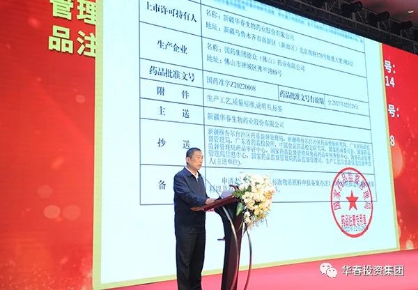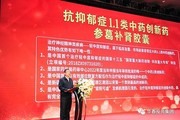 新疆自治區(qū)藥監(jiān)局黨組成員、副局長(zhǎng)余永強(qiáng)宣讀了國(guó)家藥品監(jiān)督管理局于2022年12月29日批準(zhǔn)的新疆華春生物藥業(yè)抗抑郁癥1.1類(lèi)中藥創(chuàng)新藥“參葛補(bǔ)腎膠囊”上市許可證書(shū)和“參葛補(bǔ)腎膠囊”的優(yōu)勢(shì)特點(diǎn)。