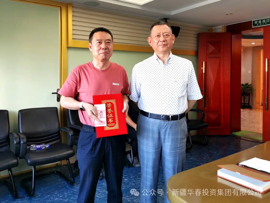 2024年7月30日,新疆華春投資集團有限公司(簡稱:集團公司)召開了關于對集團公司高級副總裁胡時先先生的表彰大會。本次表彰大會旨在表彰胡時先先生長期以來愛崗敬業(yè)、任勞任怨、勇于擔當?shù)穆殬I(yè)精神。本次表彰大會由集團公司董事局主席兼總裁李成功先生主持并親自為胡時先先生頒發(fā)了“敬業(yè)獎”榮譽證書及10000元獎金。