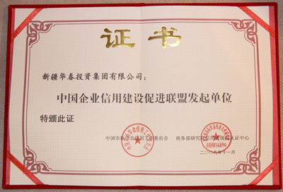 華春投資集團(tuán)被評(píng)為最高信用等級(jí)即AAA①級(jí)的誠(chéng)信企業(yè),頒發(fā)了信用等級(jí)證書(shū),并出具了信用等級(jí)評(píng)估報(bào)告。同時(shí),華春投資集團(tuán)被商務(wù)部研究院信用評(píng)級(jí)與認(rèn)證中心定為中國(guó)企業(yè)信用建設(shè)促進(jìn)聯(lián)盟發(fā)起單位,總裁李成功先生被定為中國(guó)企業(yè)信用建設(shè)促進(jìn)聯(lián)盟發(fā)起個(gè)人。