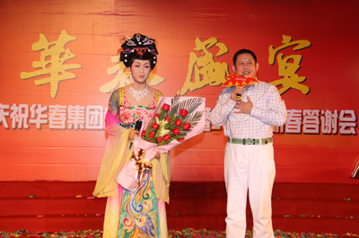 大型舞蹈《甜甜的歌兒迎賓客》拉開了慶典晚會(huì)的序幕,自治區(qū)工商聯(lián)黨組副書記、常務(wù)副主席陳建華發(fā)表了熱情洋溢的致辭:“過去的15年,華春投資集團(tuán)在創(chuàng)造社會(huì)財(cái)富、加快步伐的同時(shí),積極主動(dòng)、義不容辭地承擔(dān)社會(huì)責(zé)任,創(chuàng)造就業(yè)機(jī)會(huì)。關(guān)愛企業(yè)員工,在全區(qū)民營企業(yè)中率先建立員工子女助學(xué)基金和員工父母敬老基金,大力開展捐資助學(xué)活動(dòng),積極參與光彩事業(yè)和社會(huì)公益事業(yè),一次次為社會(huì)弱勢(shì)群體奉獻(xiàn)出了華春人的一片愛心。在15年的發(fā)展歷程中,華春投資集團(tuán)的努力,得到國家和社會(huì)的公認(rèn),獲得了諸多令業(yè)內(nèi)贊嘆的榮譽(yù)。歷史又將進(jìn)入了一個(gè)新的起點(diǎn),2010年是國務(wù)院“非公36條”和自治區(qū)黨委8號(hào)文件出臺(tái)五周年,今年5月自治區(qū)將召開推動(dòng)非公有制企業(yè)和中小企業(yè)發(fā)展的工作會(huì)議,華春投資集團(tuán)將迎來快速發(fā)展的新機(jī)遇。在此,我們衷心的祝愿:華春投資集團(tuán)在新的起點(diǎn)上,更加振奮精神、更加團(tuán)結(jié)奮斗、更加開拓前進(jìn),努力迎來2個(gè)、第3個(gè)、更多加更輝煌的15年!在此,我們衷心的希望:華春團(tuán)隊(duì)在今后的若干個(gè)15年中,為新疆經(jīng)濟(jì)發(fā)展、為整個(gè)社會(huì),再源源不斷的譜寫出創(chuàng)新、奮發(fā)、輝煌的新篇章!”
