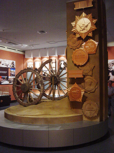最令人感動的是在大型穹幕展廳,逼真的展示著軍墾戰(zhàn)士在那西北邊陲天蒼蒼、野茫茫的亙古荒原,以其革命的樂觀主義精神戰(zhàn)天斗地的墾荒史,在他們手中奇跡般的將戈壁荒灘變成一個現(xiàn)代化的園林城市。軍墾精神,彪炳史冊!