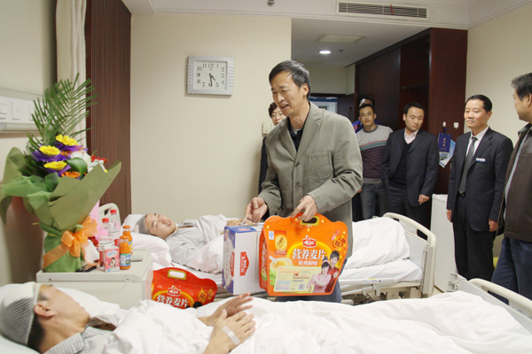 隨后,工會(huì)主席韓建新一行又來到主治醫(yī)生辦公室向醫(yī)生詢問治療方案,深入了解受傷員工的傷情,并反復(fù)強(qiáng)調(diào)希望醫(yī)護(hù)人員盡最大的努力救治,使受傷員工早日康復(fù),不要留下后遺癥。