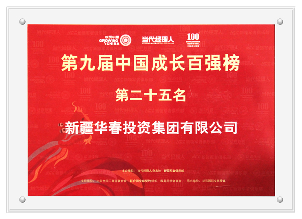 由《當代經(jīng)理人》雜志社和新領(lǐng)軍者俱樂部主辦、全國工商聯(lián)、歐美同學會商會、聯(lián)合國全球契約組織等聯(lián)合協(xié)辦的第十三屆成長中國高峰年會暨2010中國成長百強頒獎盛典,于12月4日~5日在北京隆重舉行,新疆華春投資集團入選“2010中國成長百強”前25名、董事長兼總裁李成功先生榮獲“2010年度新領(lǐng)軍人物”稱號。