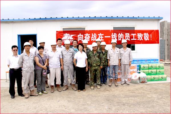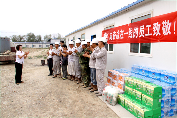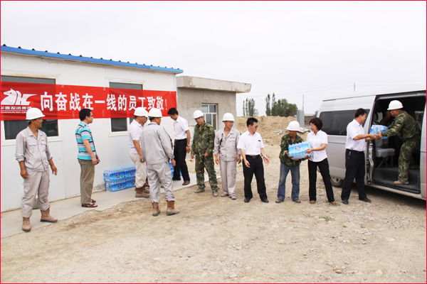 6月30日,新疆華春投資集團(tuán)工會(huì)主席高青和行政辦副主任鄭培君、華春集團(tuán)子公司新疆恒潤(rùn)實(shí)業(yè)有限公司辦公室主任及集團(tuán)編輯部全員一行,將一箱箱的統(tǒng)一綠茶和茉莉蜜茶、一件件的純凈水及綠豆、冰糖、白糖等降溫防暑飲料與物品,送給奮戰(zhàn)在五家渠華春毛紡工業(yè)園項(xiàng)目建設(shè)工地的一線(xiàn)員工,同時(shí)也送去了李成功總裁和華春全員的關(guān)愛(ài)之心。一線(xiàn)員工們接到公司送來(lái)的慰問(wèn)品,深深感受到公司的關(guān)懷,“感謝李總裁對(duì)我們的關(guān)心!謝謝公司對(duì)我們的慰問(wèn)看望!”