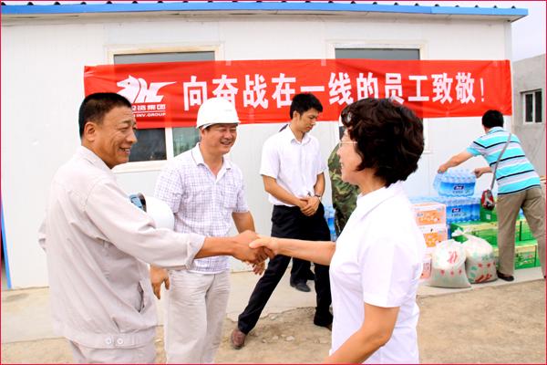 關(guān)愛(ài)員工,是華春企業(yè)文化的精髓。入夏天氣持續(xù)高溫,炎熱異常,但五家渠華春毛紡工業(yè)園項(xiàng)目建設(shè)工地的員工們,頂烈日、戰(zhàn)酷暑,堅(jiān)守在崗位。華春集團(tuán)心系一線(xiàn)員工,自6月下旬以來(lái),集團(tuán)行政辦與有關(guān)子公司管理層都前去慰問(wèn)。中國(guó)關(guān)愛(ài)員工優(yōu)秀民營(yíng)企業(yè)家李成功總裁,還特地于端午節(jié)親臨工地現(xiàn)場(chǎng),親切看望慰問(wèn)了員工與施工單位的工作人員。華春集團(tuán)與總裁李成功先生的關(guān)心,極大的鼓舞著一線(xiàn)員工的工作熱情,大家決心要以實(shí)際行動(dòng)發(fā)揚(yáng)工人階級(jí)頑強(qiáng)拼搏的精神,有序推進(jìn)工程建設(shè),為華春毛紡工業(yè)園項(xiàng)目早日建成做出貢獻(xiàn)。