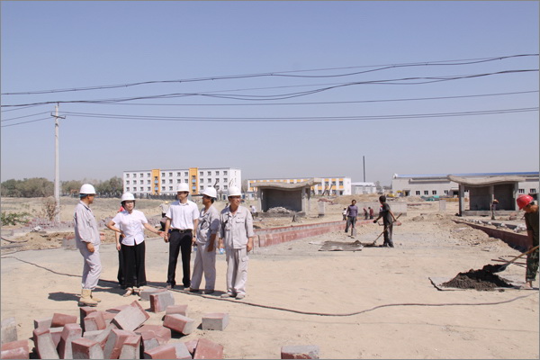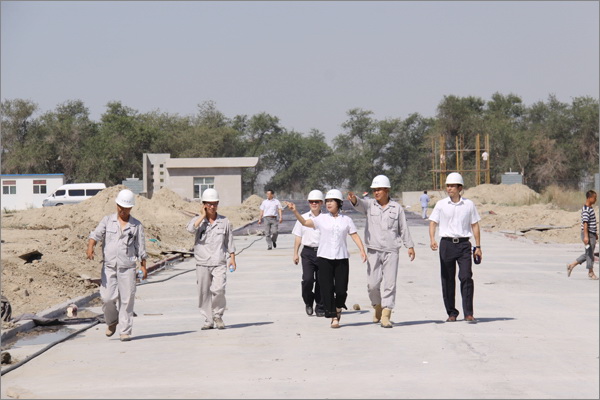 在新疆華春投資集團工會發(fā)出“決戰(zhàn)50天 建成毛紡工業(yè)園”號召后的20天,于7月31日集團工會主席高青攜編輯部全員,帶著李成功總裁和華春全體員工的期望,前往五家渠毛紡工業(yè)園項目建設工地,對工程技術人員“誓保毛紡工業(yè)園如期建成”諾言的兌現情況進行了解,同時對奮戰(zhàn)在一線的工程部、華春毛紡公司的員工和設備安裝人員進行了慰問,送去了礦泉水。