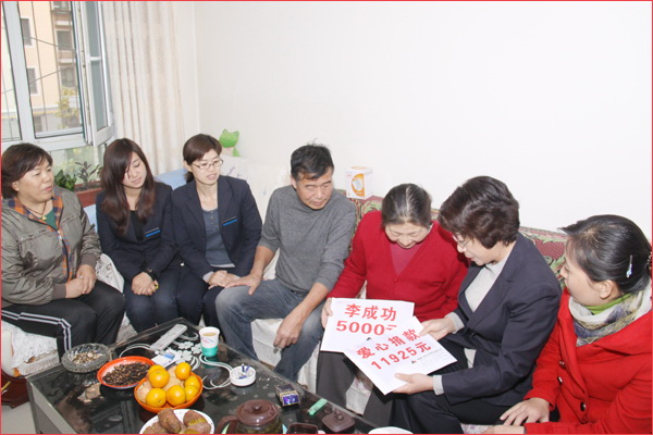2012年10月17日,盡管季節(jié)已進入瑟瑟寒冷的深秋,但新疆華春投資集團的愛心捐款,為患病員工送去了溫情暖意。新疆華春投資集團工會主席高青與人力資源部、集團子公司華景物業(yè)及編輯部的管理人員一行,代表新疆華春投資集團李成功總裁和華春全員前去親切慰問患病的員工杜菊萍,當她接過李成功總裁和華春員工16925元的愛心捐款時,流下感動的淚水。杜菊萍的丈夫激動的一再說:“太感謝華春老總和華春人了,對一個基層員工還這樣的關(guān)心,太感謝、太感謝了!”