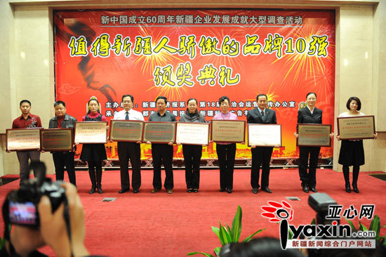 《亞心網(wǎng)》2009.11.09報道:“值得新疆人驕傲的品牌10強”評選活動頒獎