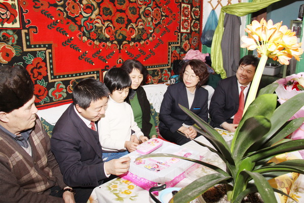 晨報訊:3月8日,新疆華春投資集團工會主席高青、工會委員鄭培君和集團下屬的新疆華景物業(yè)服務公司管理人員楊志榮一行,帶著華春投資集團總裁李成功先生和華春全體工作人員的深厚情義,前往已故員工阿里木•阿吾東的家,看望了其父母與妻子、孩子,送上鮮花和慰問品,表達節(jié)日祝福,使已故員工的家屬真切感受到了來自華春這個大家庭的關懷和溫暖(下圖)。