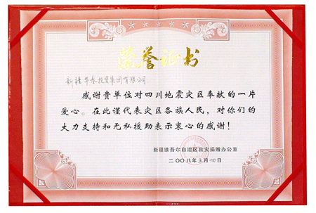新疆華春投資集團為四川汶川災(zāi)區(qū)捐款