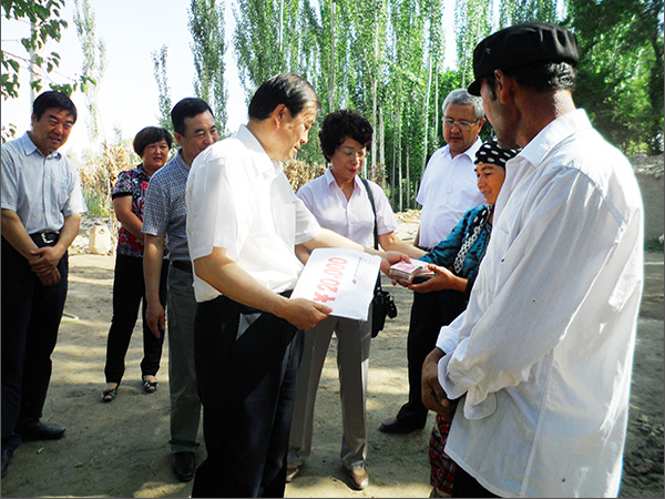 6月23-25日,由自治區(qū)政協(xié)副主席李湘林帶領(lǐng)自治區(qū)政協(xié)提案委員會和林業(yè)廳有關(guān)領(lǐng)導以及新疆華春投資集團副總裁常青、工會主席高青一行6人組成的調(diào)研組,赴喀什地區(qū)巴楚縣夏馬勒鄉(xiāng)喀什噶爾買里村進行調(diào)研扶貧,華春投資集團為該村和貧困戶捐助現(xiàn)金共14萬元,為新疆的貧困地區(qū)的少數(shù)民族農(nóng)民獻上一片愛心。